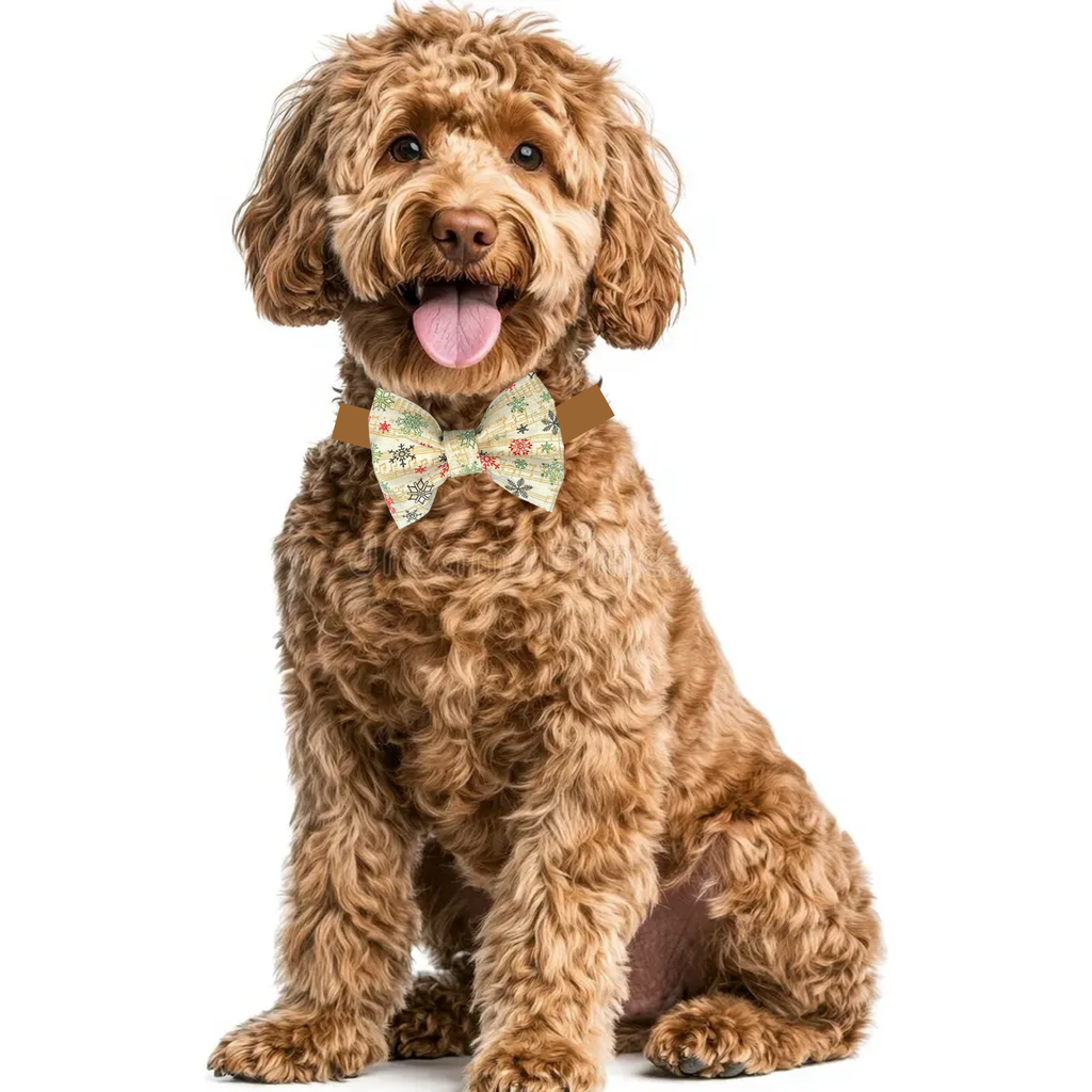 Pet Bow Tie, Holiday Music with Snowflakes, Collar Through, Pet Accessories.