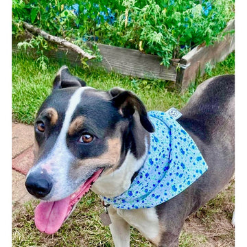 Our bandanas are different! They are made in whole or in part from fabric remnants to divert material from going into landfills. They tie on with a scoop neck design for comfort and less bunching.